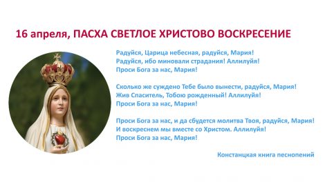 16 апреля, ПАСХА СВЕТЛОЕ ХРИСТОВО ВОСКРЕСЕНИЕ Радуйся, Царица небесная, радуйся, Мария! Радуйся, ибо миновали страдания! Аллилуйя! Проси Бога за нас, Мария! Сколько же...