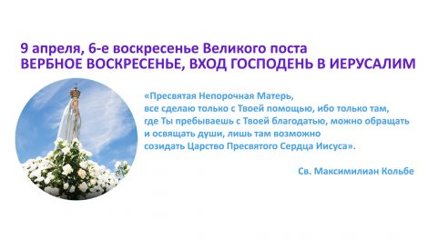9 апреля, 6-е воскресенье Великого поста ВЕРБНОЕ ВОСКРЕСЕНЬЕ, ВХОД ГОСПОДЕНЬ В ИЕРУСАЛИМ «Пресвятая Непорочная Матерь, все сделаю только с Твоей помощью, ибо только там...
