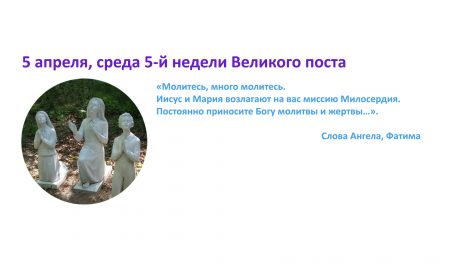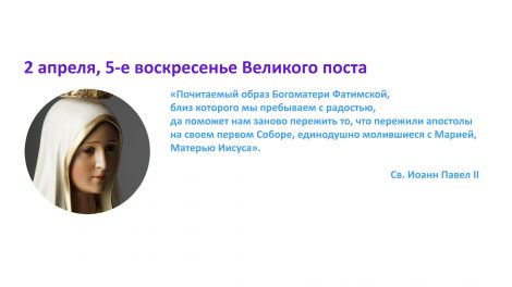 2 апреля, 5-е воскресенье Великого поста «Почитаемый образ Богоматери Фатимской, близ которого мы пребываем с радостью, да поможет нам заново пережить то, что пережили...