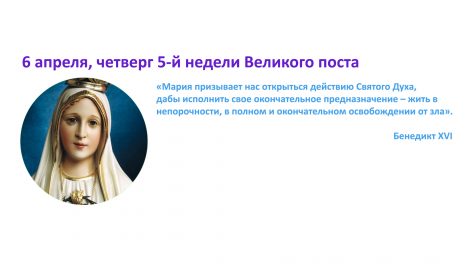 6 апреля, четверг 5-й недели Великого поста «Мария призывает нас открыться действию Святого Духа, дабы исполнить свое окончательное предназначение – жить в...