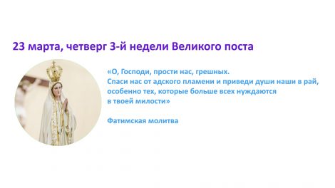 23 марта, четверг 3-й недели Великого поста «О, Господи, прости нас, грешных. Спаси нас от адского пламени и приведи души наши в рай, особенно тех, которые больше всех...