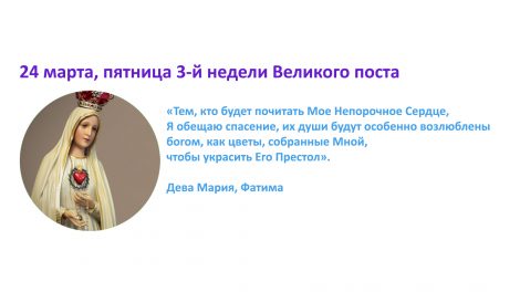 24 марта, пятница 3-й недели Великого поста «Тем, кто будет почитать Мое Непорочное Сердце, Я обещаю спасение, их души будут особенно возлюблены богом, как цветы...